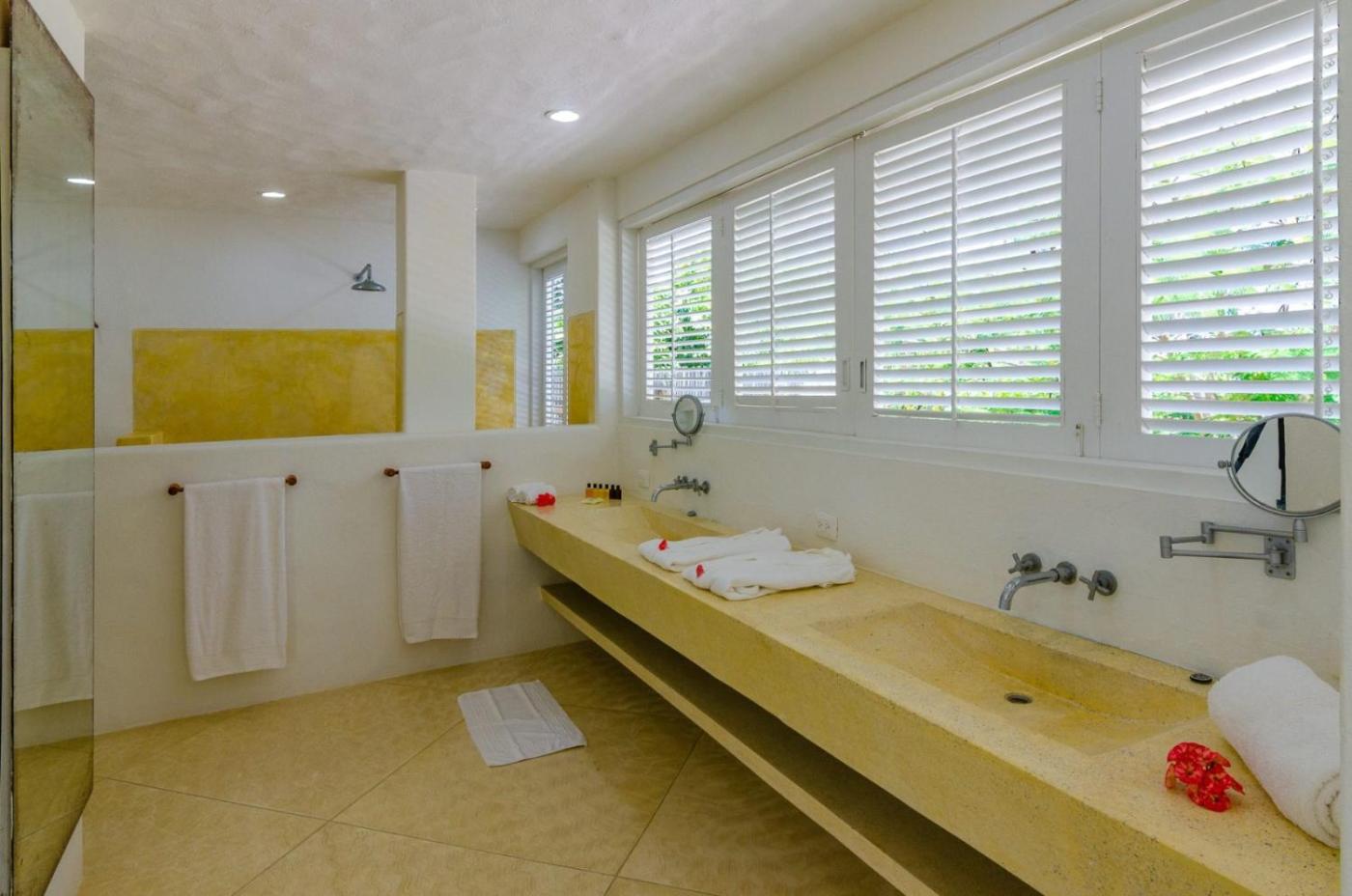 A private beach area can be found at the villa, along with a shared lounge.